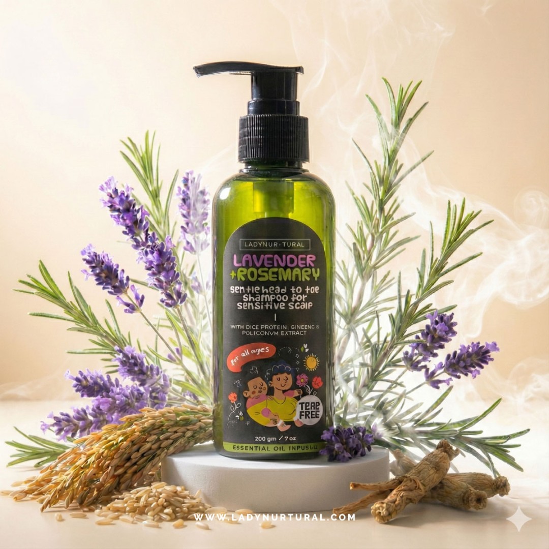 Lavender+Rosemary Shampoo diformulasikan dari gabungan bahan hebat dan baik untuk kesihatan rambut dan kulit kepala seperti